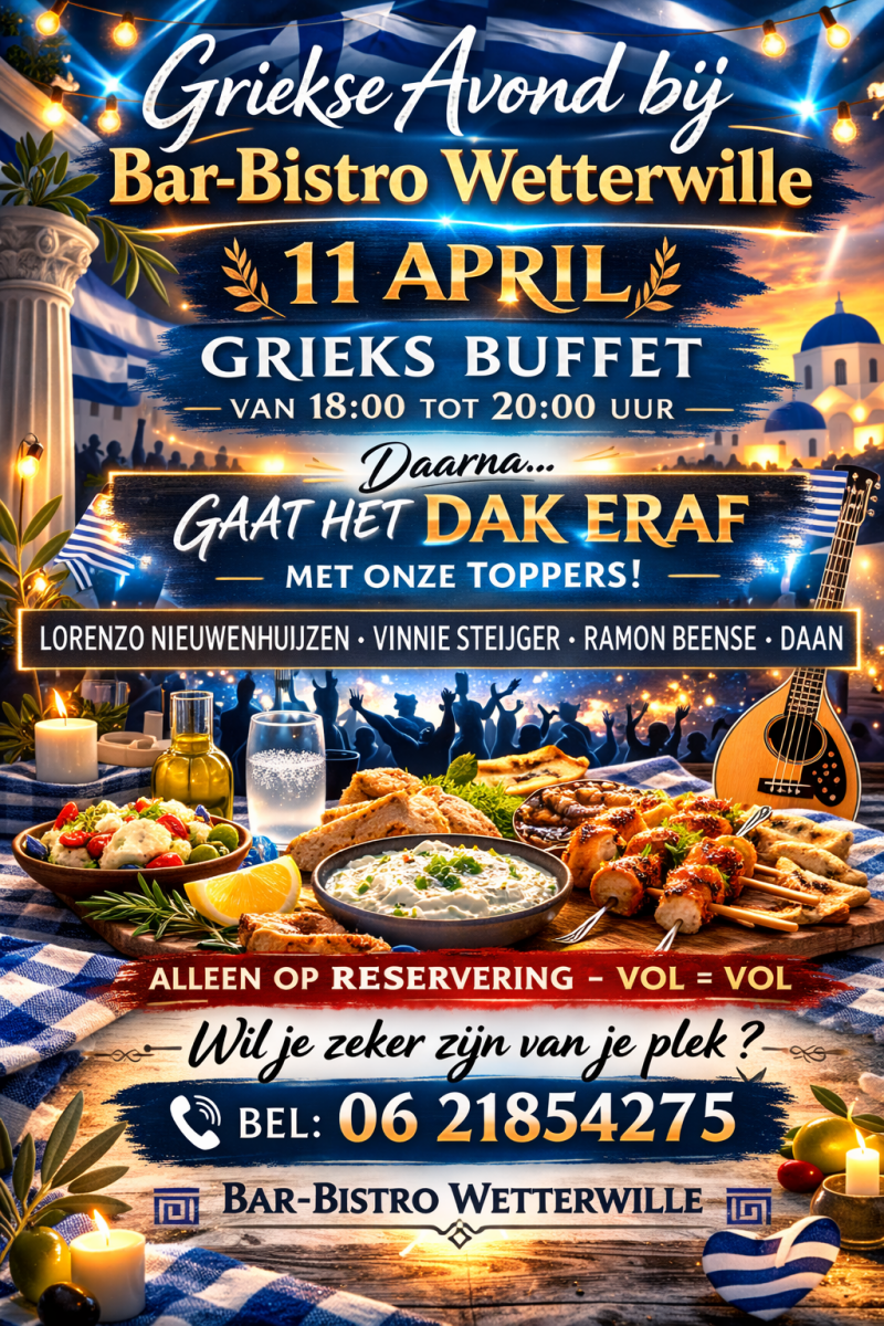 Laat u meevoeren naar Griekenland, midden in Loosdrecht! Ons Griekse buffet biedt een onvergetelijke culinaire reis met authentieke smaken en een sfeer die u het gevoel geeft op vakantie te zijn. Kom proeven en genieten van een stukje mediterrane zon.